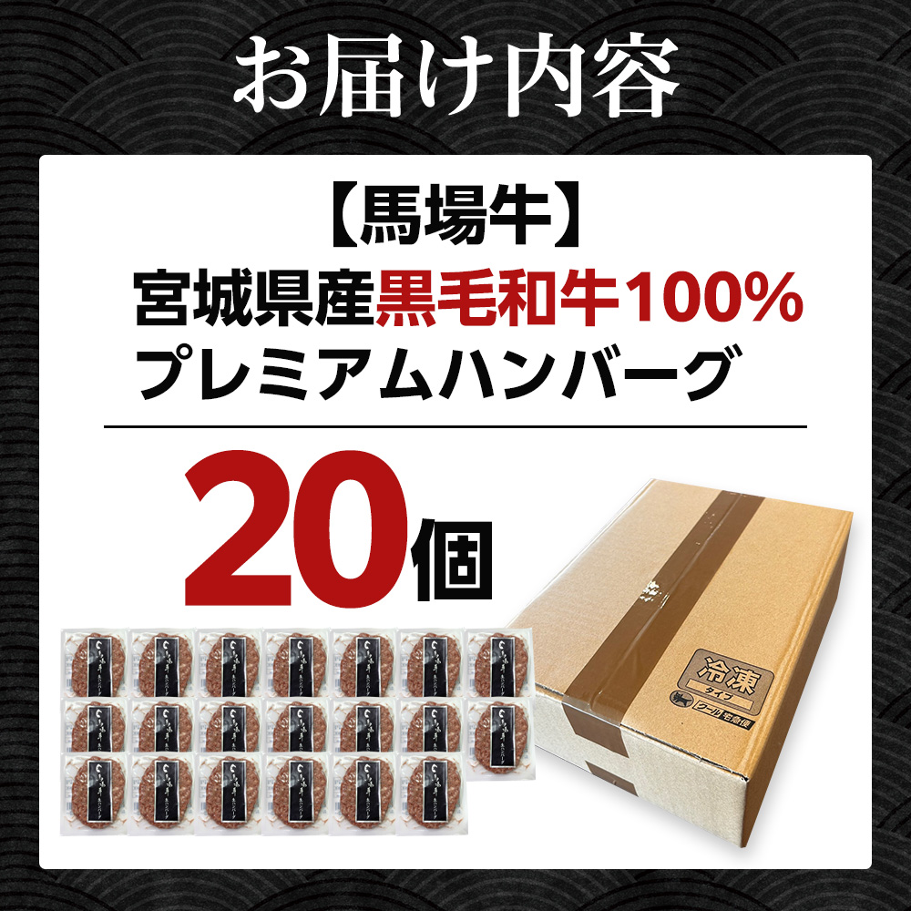 【馬場牛】牛肉 宮城県産黒毛和牛100% プレミアムハンバーグ 20個セット 牛肉100%|お肉 肉 国産牛 牛肉 ハンバーグ 宮城県角田市育ち