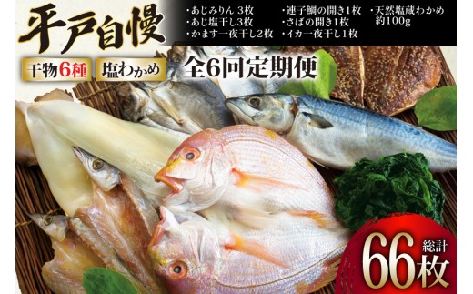 - 干物 平戸 豪華 6種 詰合せ & 天然 塩わかめ セット 11枚 6回 定期便 総計 66枚 食べ比べ [一山水産 長崎県 平戸市 hr42bgy400125] あじ アジ さば サバ いか イカ タイ 鯛 ワカメ 国産 おかず