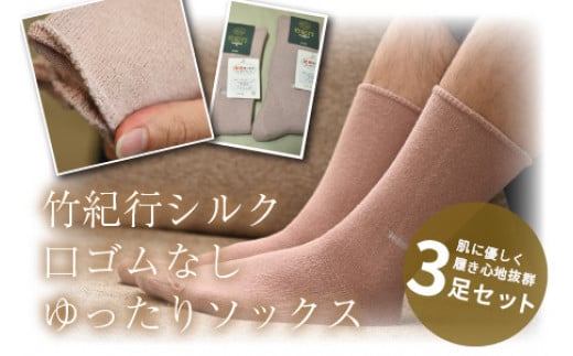 竹紀行シルク口ゴムなしゆったりソックス(ピンク3足)《 送料無料 おすすめ 靴下 シルク 保湿 消臭 抗菌 肌に優しい 通気性 吸湿性 発散性 口ゴムなし 父の日 》【2401T02310_03】