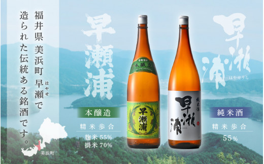 【早瀬浦】本醸造 1800ml × 1本 & 純米酒 1800ml × 1本 セット【飲み比べ 日本酒 地酒 福井 美浜 早瀬 フルーティ 男酒 硬水 ミネラル 希少 ご褒美 家飲み 敬老の日 プレゼント】[m16-b025]