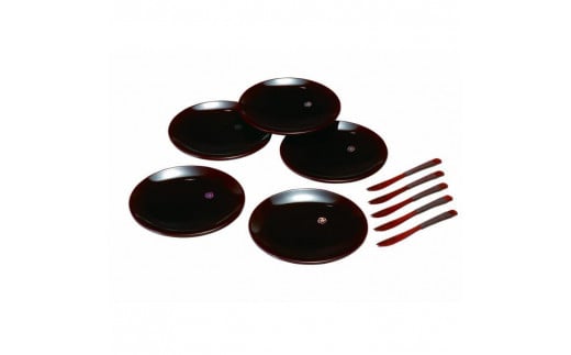 4.5寸 銘々皿 総溜 明月 (5枚組・フォーク付き)【YG126】