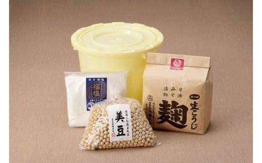 - はじめての味噌づくりセット(樽つき)【味噌 みそ 味噌セット 米 こうじ 米麹 美豆 大豆 福塩 岡山県産 味噌づくり 味噌汁 ご飯 セット 詰合せ】