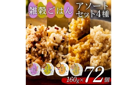 雑穀ごはん アソートセット 4種 160g 72個 十六雑穀 発芽玄米 玄米 もち麦 パックごはん パックご飯 ごはんパック ご飯パック パックライス パック 16雑穀 雑穀 米 ごはん ご飯 こめ ライス 備蓄 保存 防災 レンジ 温めるだけ レンチン 簡単 調理 健康 栄養 ダイエット 美容 レトルト インスタント 国産 セット 人気 おいしい 72 72食 おくさま印 大阪 松原