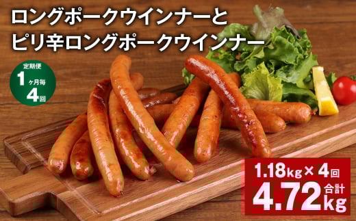 - 【1ヶ月毎4回定期便】 ロングポークウインナーとピリ辛ロングポークウインナー 計約4.72kg【お申込み翌月から出荷】