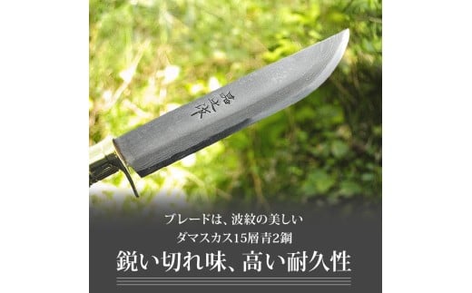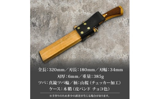 - 土佐鍛 ダマスカス山遊鉈 山桜チェッカー柄 ケース 木鞘 | ナイフ キャンプ アウトドア 打刃物 土佐 鉈 剣鉈 なた 職人 山林 狩猟 熊 刃物 薪割り ハンドメイド 釣り 伝統 工芸 高知県 南国市
