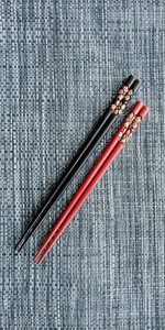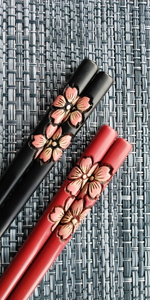 - 村上木彫堆朱 桜色分 夫婦箸 C4033