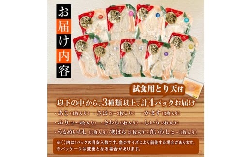 - 【試食用とり天付】<訳あり・お試し用>地魚フライセット詰合せ (計4P・3種類以上) おかず おつまみ 惣菜 お惣菜 お弁当 詰め合わせ アジフライ さば 鯖 あじ 鯵 ぶり 鰤 冷凍 時短 小分け 魚 魚フライ ふるさと納税 【DH209-G】【ネクサ】