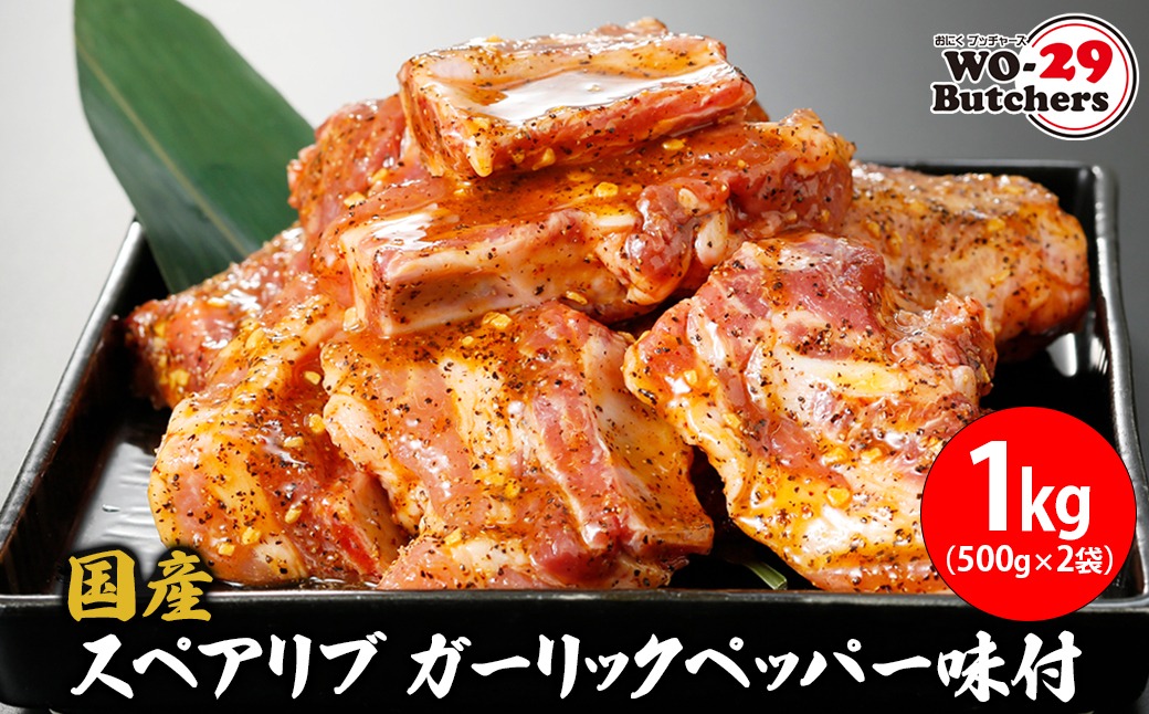 国産豚 スペアリブ ガーリックペッパー味付 1kg (500g×2袋) K2324