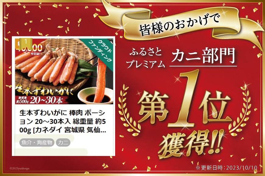 - 【CF04】生本ずわいがに 棒肉 ポーション 20~30本入 総重量 約500g むき身 カニ かに 生 ずわいがに ズワイガニ ずわい蟹 ズワイ蟹 蟹 カニ カニ脚 蟹脚 カニ棒肉 カニ 蟹 カニしゃぶ [カネダイ 宮城県 気仙沼市 20564322_CF04]