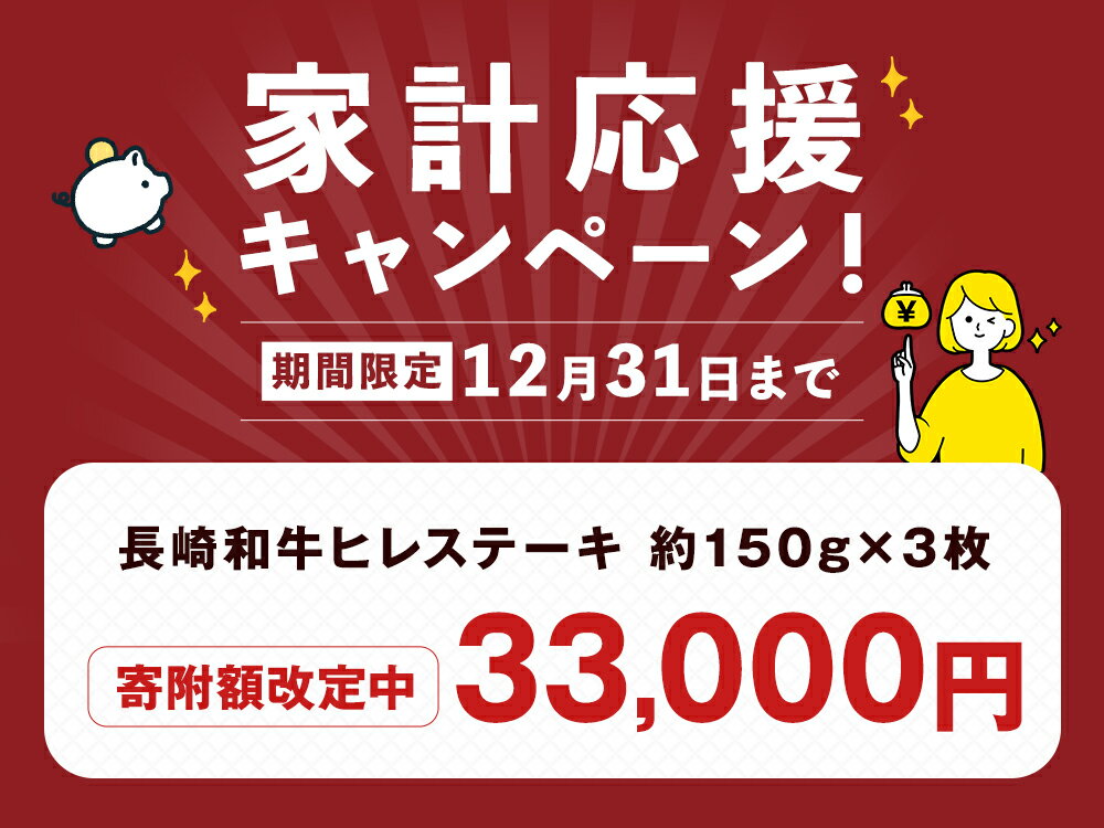 - 【ふるさと納税】【期間限定!~12月31日まで一部寄附額改定中】A4~A5ランク!最高級希少部位! 長崎和牛ヒレ ステーキ 約150g 選べる内容量 ( 2枚 / 3枚 / 5枚 / 10枚 ) | ヒレ 和牛 牛肉 お肉 肉 赤身 ステーキソース付 真空包装 冷凍 長崎県産 国産 長崎県 長崎市 送料無料