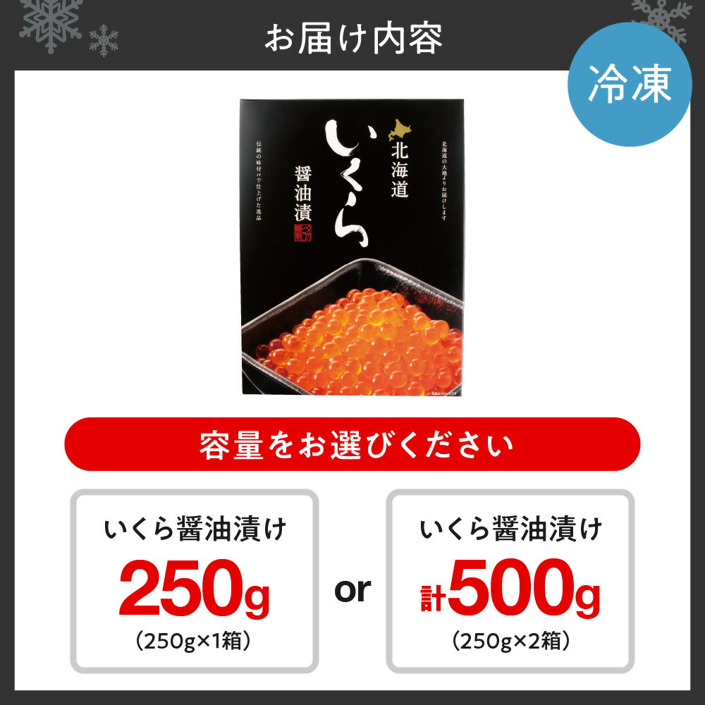 - 【ふるさと納税】 北海道産 いくら 醤油漬け 【 選べる 容量 】 250g 500g 秋鮭 イクラ ikura 国産 秋鮭卵 昆布 鰹節エキス 味付き 鮭 サケ シャケ 魚卵 海鮮 魚介 イクラ丼 おつまみ おかず ご飯のお供 冷凍 北海道 札幌市