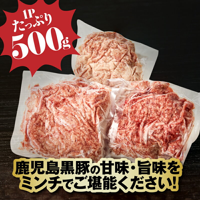 【ふるさと納税】鹿児島黒豚ミンチ(ひき肉) 1.5kg[500g×3パック] 国産 鹿児島 黒豚 豚肉 豚 小分け 冷凍 お肉 ハンバーグ 個包装 真空パック ミンチ そぼろ お弁当【鎌田黒豚農場】