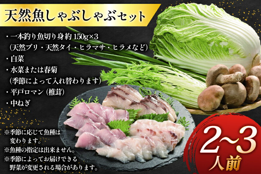 - 【ふるさと納税】魚 しゃぶしゃぶ 平戸産 天然魚 しゃぶしゃぶセット 安心の地元 野菜付 2〜3人前 [ひらど新鮮市場 長崎県 平戸市 hr42bgy400138] 海鮮鍋 鍋セット 高級 魚 天然 ブリタイ ヒラマサ ヒラス ヒラメ 鍋 セット
