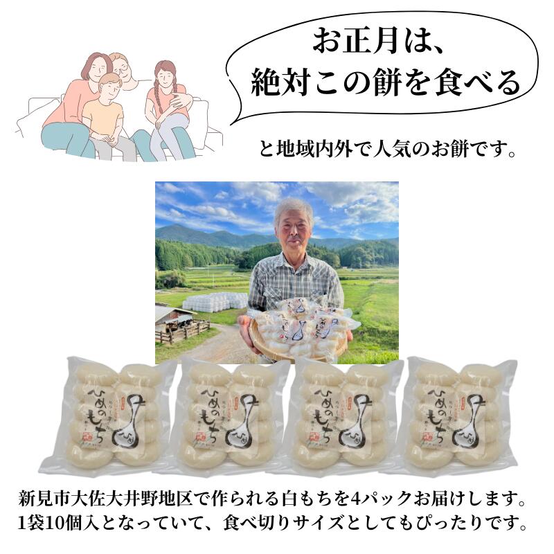 【ふるさと納税】発送月が選べる!! 白もち 40個 (10個入500g×4パック)ヒメノモチ100%使用 発送月が選べる 丸餅 白餅 もち 餅 和菓子 もち米 ヒメノモチ 真空パック お雑煮 おしるこ ぜんざい おいしい 人気 お取り寄せ