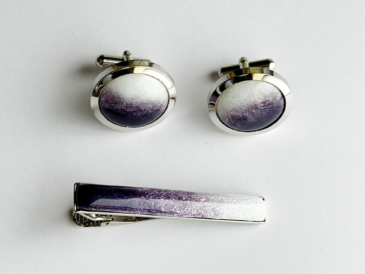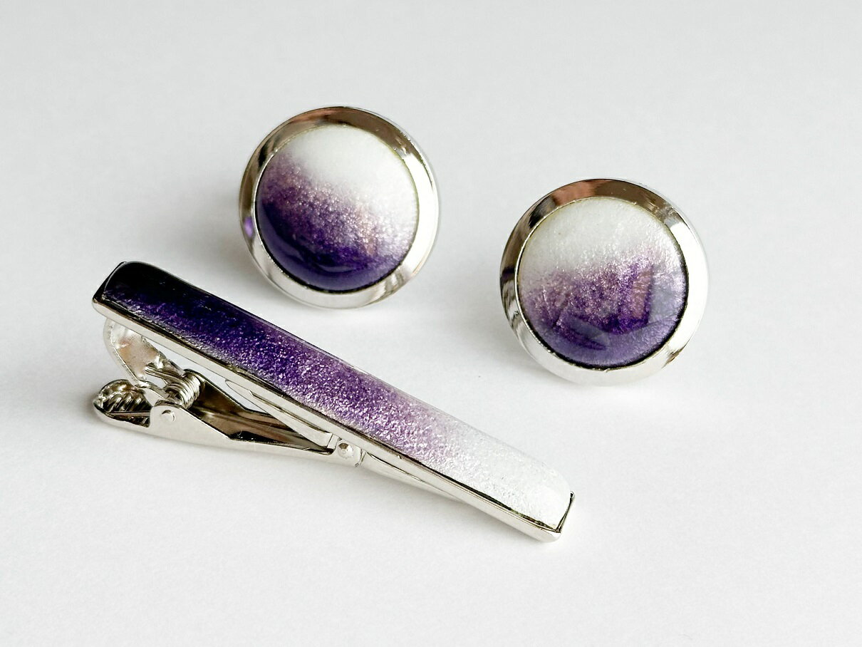 【ふるさと納税】藤色の七宝焼ネクタイピン(長)&カフスセット