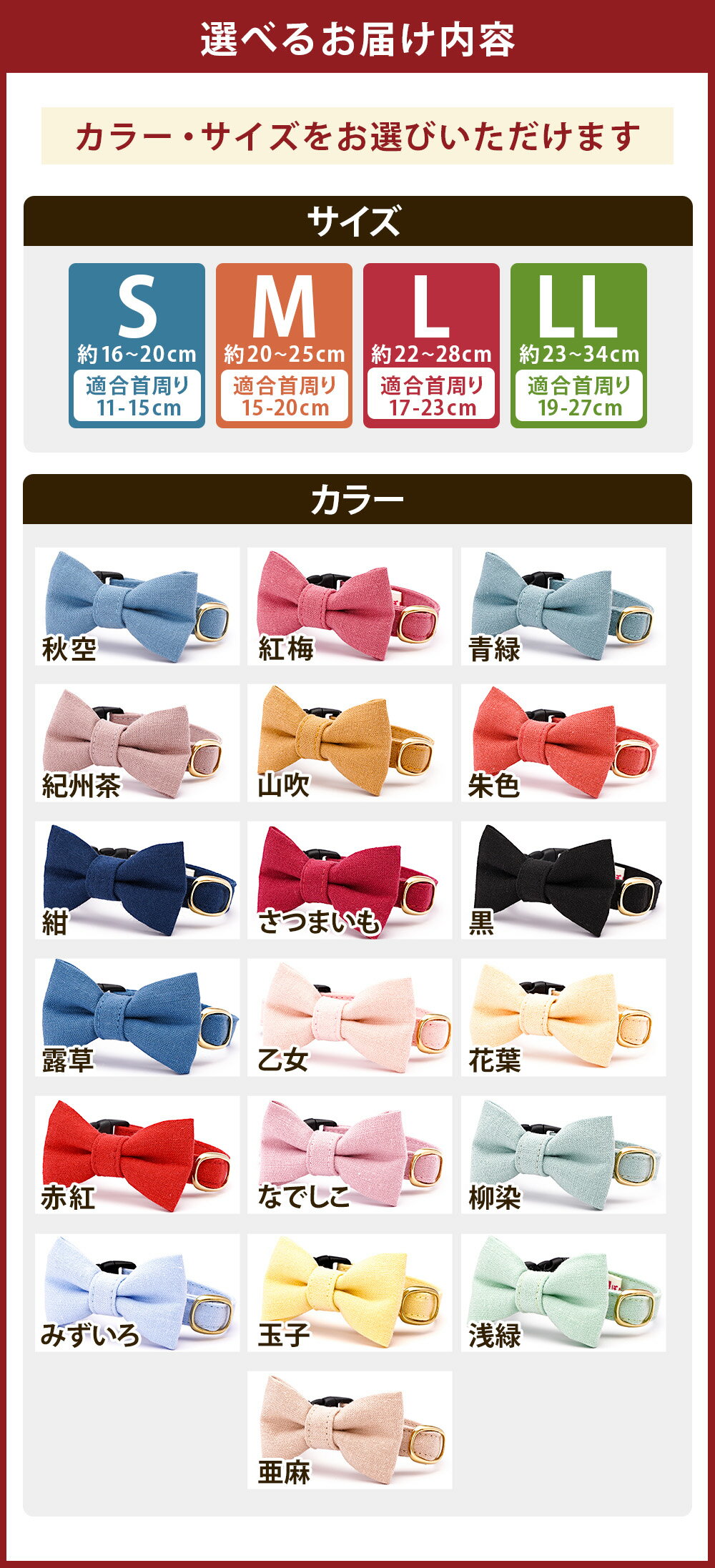 - 【ふるさと納税】<選べるサイズ・カラー>ぽぽねこ リボン付き猫首輪 MUJIコットンプレーン セイフティバックル・鈴付き・ハゲにくい 「共通返礼品」 | 1本 S/M/L/LLサイズ くびわ りぼん シーチング生地 子猫 成猫 シニア猫 ねこ ネコ ペット用品 かわいい 日本製 送料無料