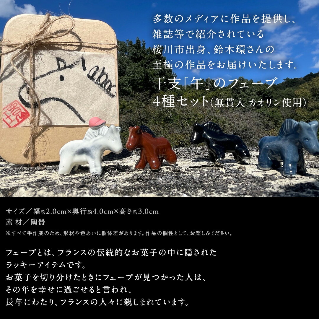- 【ふるさと納税】陶芸家 「 鈴木環 」 干支 「 午 」 の フェーブ 4種セット 無貫入 カオリン使用 置き物 陶器 ラッキーアイテム 茨城県 桜川市 陶芸家 鈴木環
