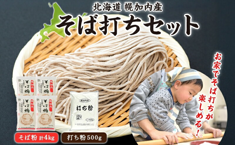 - 【ふるさと納税】そば打ちセット そば粉4kg 打ち粉500g そば 蕎麦 ソバ 石臼挽き 本格 キタワセ 北海道産 家庭用 手打ちそば 粉 十割そば 入門 体験 麺類 そば作り セット 麺 つなぎ 国産 北海道 幌加内町