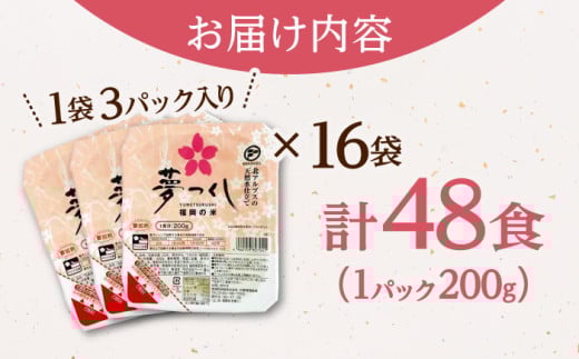 福岡県産 夢つくし パックご飯 計48パック (各200g)▼ パックごはん パックライス パックご飯 レトルト 米 白米 保存食 200g 桂川町/東福岡米穀株式会社 [ADBG002]
