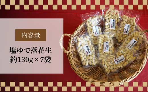 塩ゆで落花生 7袋 約130g/袋 計約910g | 落花生 塩茹で 塩ゆでピーナッツ ピーナッツ おつまみ ナッツ類 栄養 たんぱく質 食物繊維 タンパク質 コレステロール お菓子 コーヒータイム お酒 ギフト プレゼント おすそ分け 贈答用 手土産 埼玉県 東松山市 ネイブルホリコシ