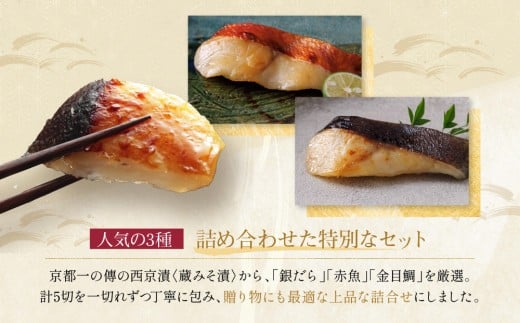 - 西京漬け 祇園 蔵みそ漬5切入[G-5] 京都老舗 一の傳 漬け 魚 詰め合わせ 送料無料 個包装 西京漬 西京焼き 銀だら 赤魚 お取り寄せ グルメ ご当地グルメ お中元 お歳暮 贈り物 贈答 内祝い 味噌漬け 加工品 着色料 保存料 うま味調味料不使用 魚介 海鮮 京都一の傳