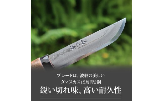 - 土佐渓流ナイフ105 黒丸輪 全曇 ダマスカス15層青紙2号鋼 | ナイフ キャンプ アウトドア 打刃物 土佐 鉈 剣鉈 なた 職人 山林 狩猟 熊 刃物 薪割り ハンドメイド 釣り 伝統 工芸 高知県 南国市