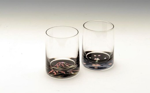 グラスセット 桜・赤富士(貝入)黒 FAD-0999