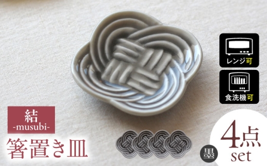 【美濃焼】 結 箸置き皿 墨 4枚セット 瑞浪市 / JS企画 / 小田陶器 黒 [AZAZ293]