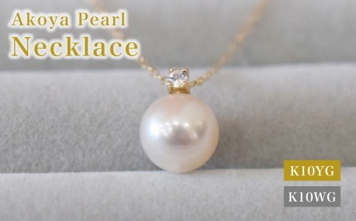 - S085-550_あこや真珠 ペンダント ネックレス 8mm - 8.5mm K10 天草 熊本 ホワイトピンク 誕生石 6月 ムーンストーン 半貴石 本真珠