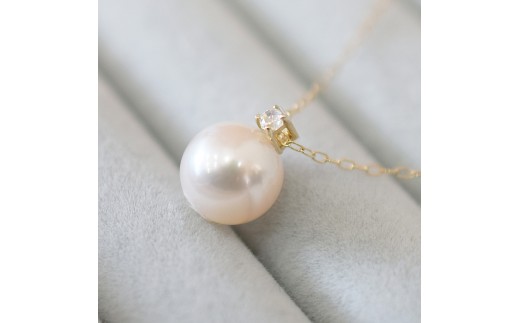 S085-550_あこや真珠 ペンダント ネックレス 8mm - 8.5mm K10 天草 熊本 ホワイトピンク 誕生石 6月 ムーンストーン 半貴石 本真珠