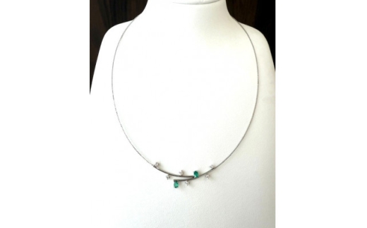 - Pt850 エメラルド ダイヤモンド ネックレス(カーブタイプ)【1676208】