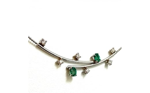 Pt850 エメラルド ダイヤモンド ネックレス(カーブタイプ)【1676208】
