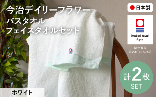 - 今治デイリーフラワー バスタオル・フェイスタオルセット(ホワイト×2) 【m100-06-B】【トクダ】