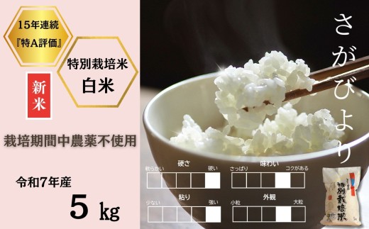 <令和7年産新米 先行予約受付中・令和7年11月上旬以降順次発送>佐賀県産特別栽培米さがびより 白米5㎏(栽培期間中農薬不使用)[A0212-0001]