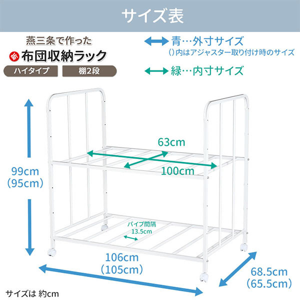 - 布団収納ラック ハイタイプ2段 布団 ふとん収納 ウォークインクローゼット 整理棚 押し入れ収納 シンプル 燕三条製 (キャスター付) [川口工器] 【056S004】