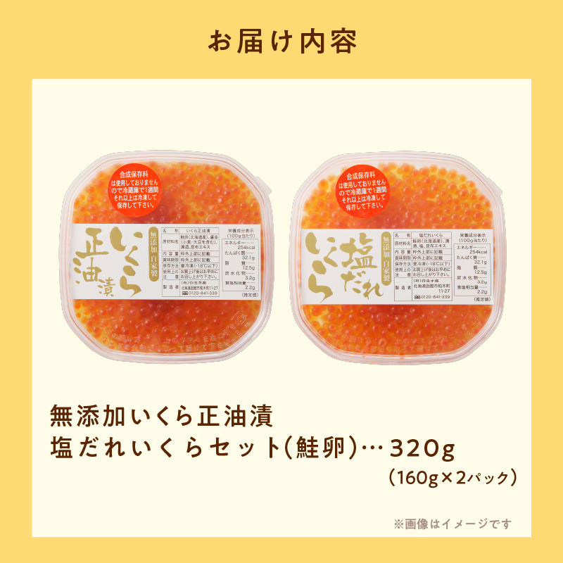 無添加いくら正油漬・塩だれいくらセット(鮭卵)各160g「函館朝市 弥生水産」_HD032-031