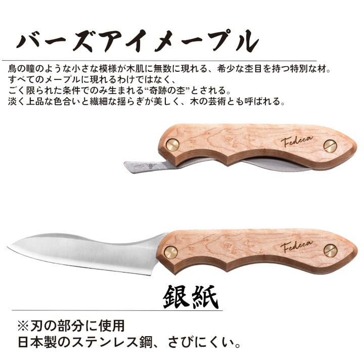 - 【FEDECA】 折畳式料理ナイフ バーズアイメープル 001214