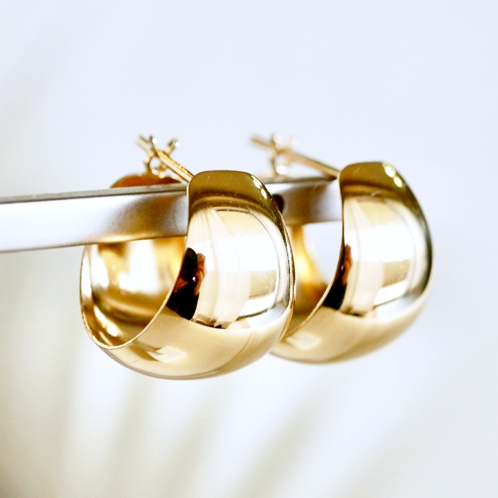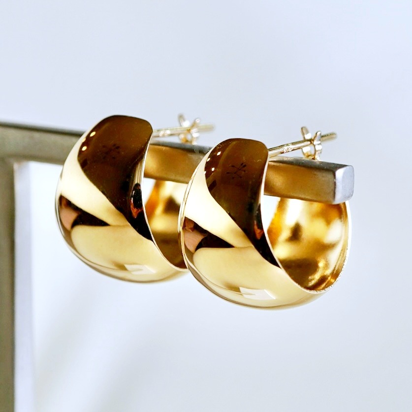 - K18 18金 イエローゴールド 地金 ボリューム フープ ピアス (直径14mm) 保証書付 KO-0055 SWAD080-14mm