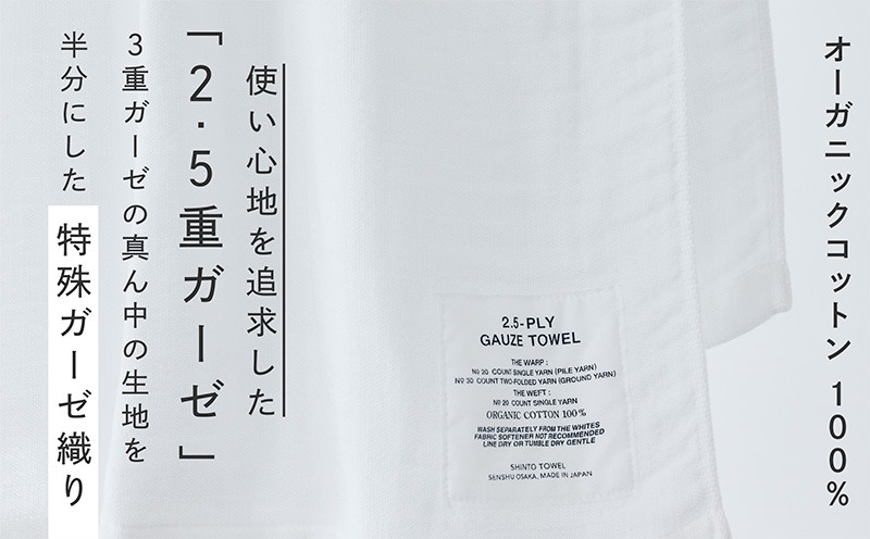 099H3952 SHINTO TOWEL「2.5重ガーゼ・バスタオル」Lサイズ(ホワイト)2枚セット オーガニックコットン100%