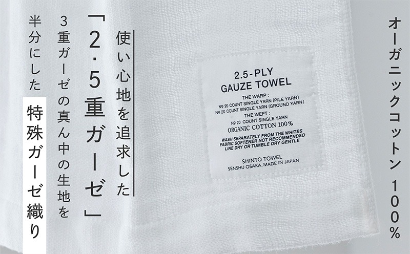 - 099H3962 SHINTO TOWEL「2.5重ガーゼ・ハンドタオル」(ホワイト)3枚セット オーガニックコットン100%