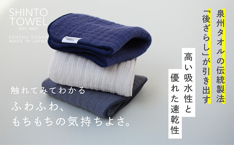 099H3979 SHINTO TOWEL「インナーパイル・ミニタオル」(チャコール)3枚セット オーガニックコットン100%