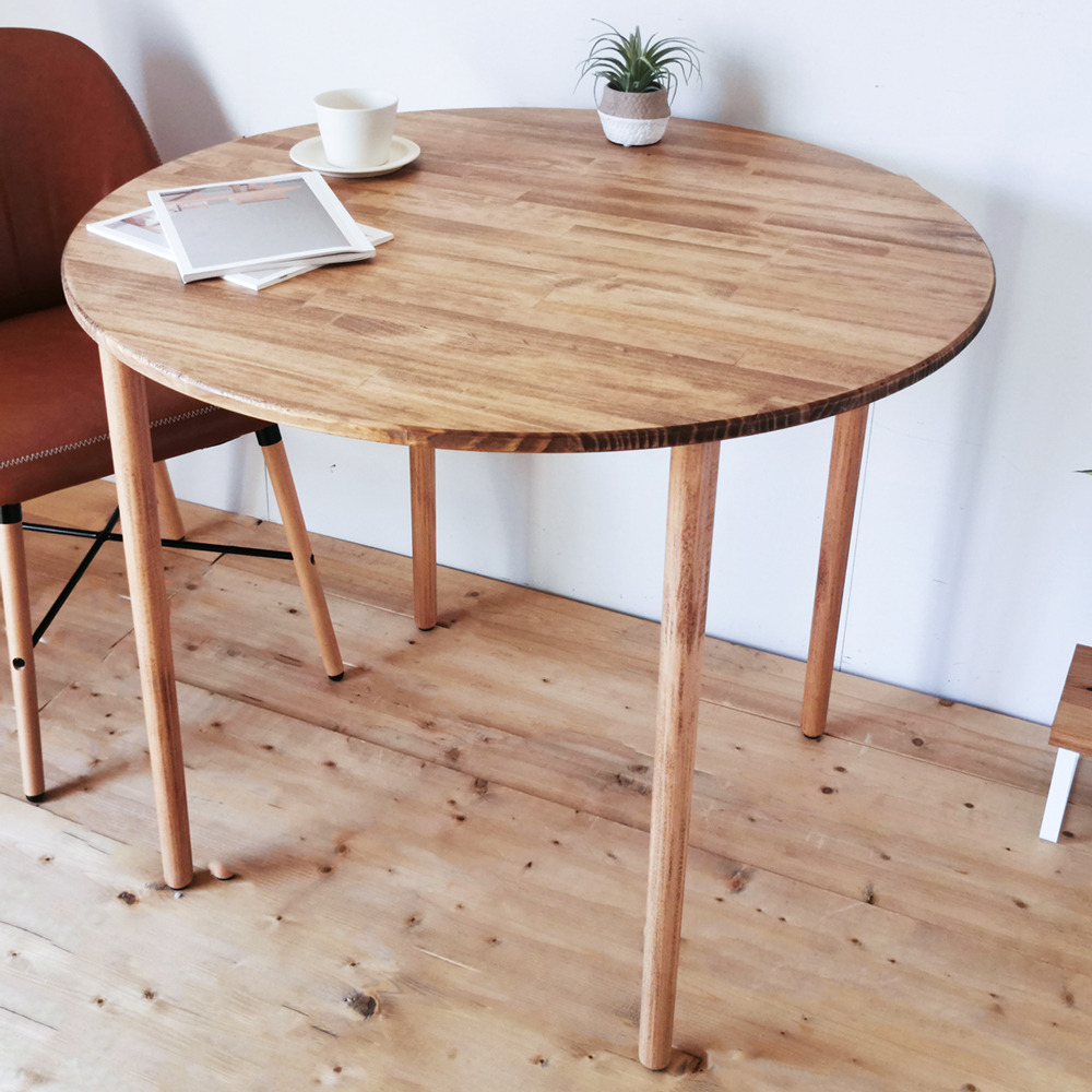 - [木脚] 天然木のダイニングテーブル (ラウンド) W90×D90×H72cm|オイル・ウレタン仕上げ 組立簡単 工具不要 [2429]