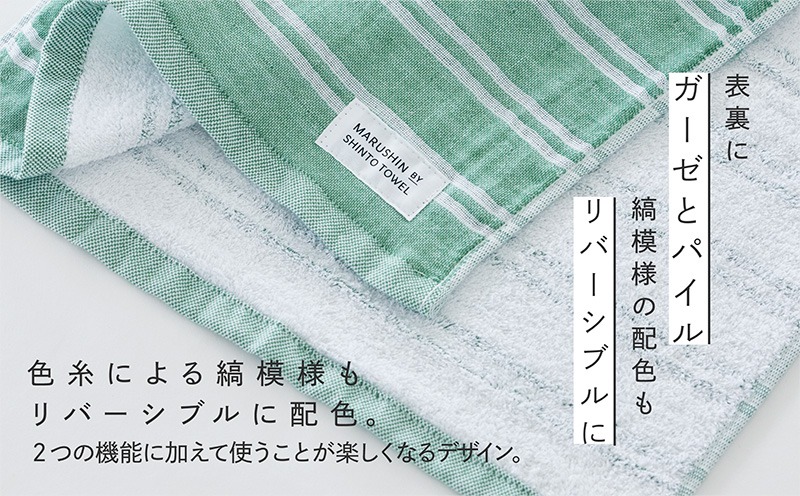 - 010B1788 神藤タオル「シマ・フェイスタオル」(ダブル色地/フォレスト)3枚セット