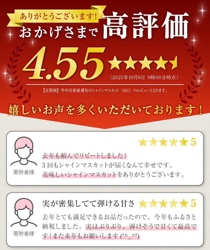 - 【ふるさと納税】 シャインマスカット 2026年 先行予約 果物 定期便 2回 3回 甲州市産 旬 選べる定期便 1kg以上 2房 山梨県産 期間限定 8~10月 発送 産地直送 フルーツ 葡萄 ぶどう ブドウ 甘い 果実 人気 新鮮 社員マスカット (MG)