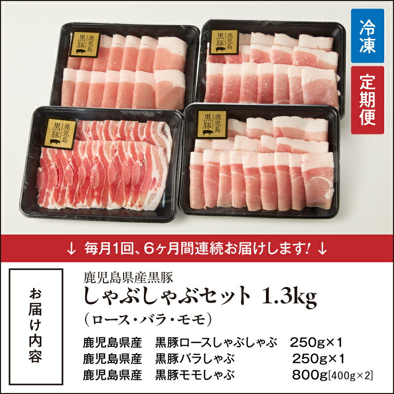 【ふるさと納税】【定期便6ヶ月】 鹿児島県産黒豚 しゃぶしゃぶセット(ロース・バラ・モモ)計7.8kg <1.3kg(ロース 250g×1P・バラ250g×1P・モモ800g)×6回>生産から肥育まで一貫して行っている黒ぶた農場のお肉を使用!小分けで料理する際に便利!【鎌田黒豚農場】