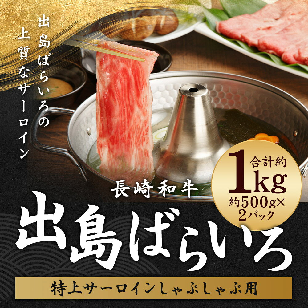 - 【ふるさと納税】出島ばらいろ 特上サーロイン しゃぶしゃぶ用 計約1kg(500g×2) 長崎和牛 牛肉 お肉 自家製ポン酢 ごまだれ付き 木箱入り 冷凍 長崎県産 国産 九州 長崎県 長崎市 送料無料