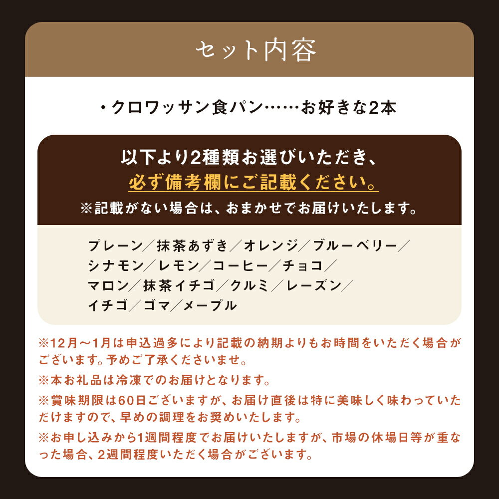 【ふるさと納税】食べ比べ15種類から選べるクロワッサン食パンセット 2本 15種類の中から2本 プレーン 抹茶あずき オレンジ チョコ ブルーベリー レーズン イチゴ メープル 食べ比べ 朝食 ぱん パン おやつ 惣菜 冷凍 長崎県 長崎市 送料無料