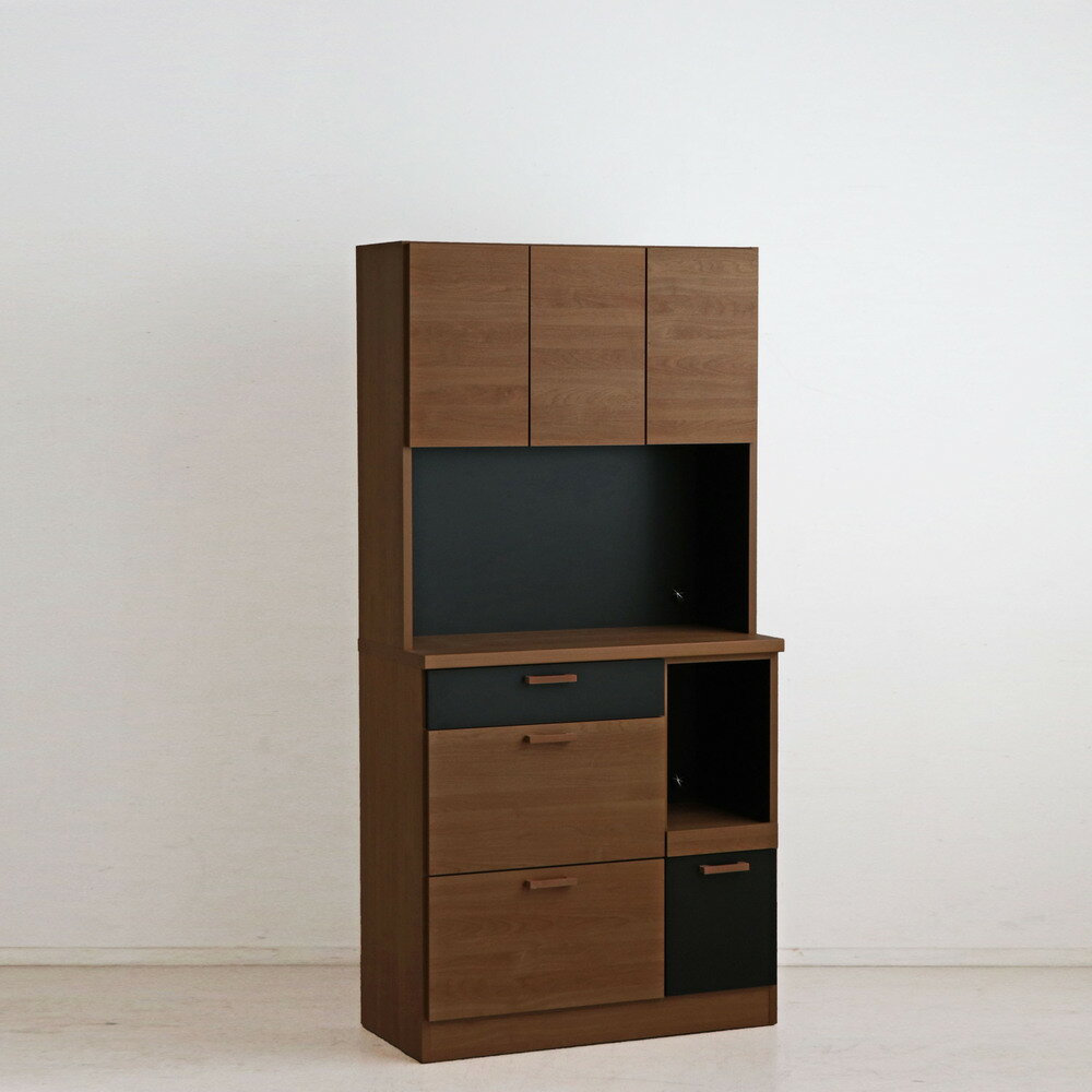【ふるさと納税】モデロ 90キッチンボード BR_BK 【食器棚 食器 ダイニングボード 家具 国産 家電収納庫 ダイニング】(H060657)