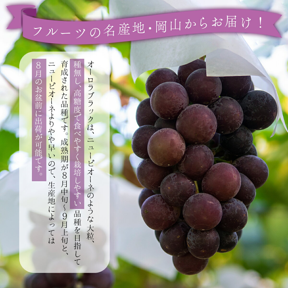 - 【ふるさと納税】<2026年発送先行予約>岡山県産 オーロラブラック 1.2kg以上(2〜3房)2026年8月下旬頃から順次発送予定 大粒 種無し 高糖度 薄皮 フルーツ 果物 くだもの ぶどう ブドウ 葡萄 岡山県 高級 人気 送料無料[025-a023]