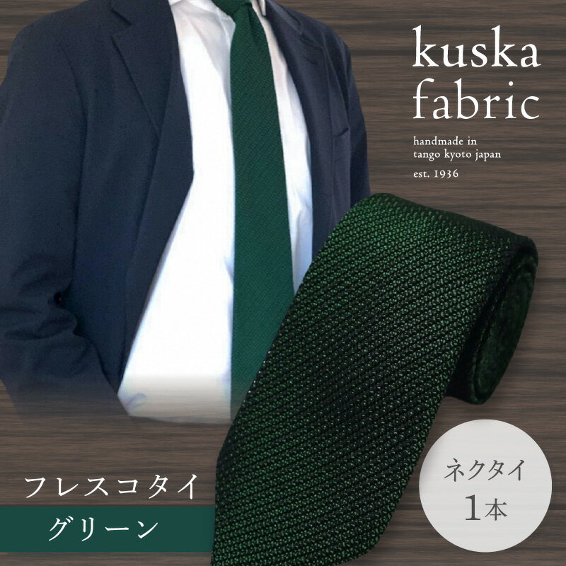 【ふるさと納税】kuska fabric フレスコタイ【グリーン】世界でも稀な手織り ネクタイ クスカ KUSKA シルク 希少 スーツ 小物 国産 日本製 手織り ギフト 贈答品 結婚式 成人式 新社会人 新生活 送料無料 社会人 立体感 プレゼント 手縫い ブランド
